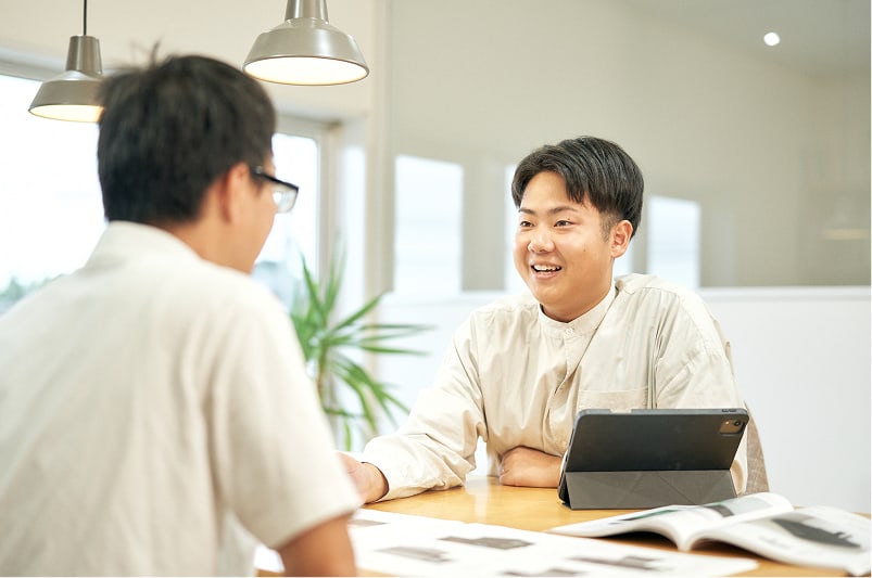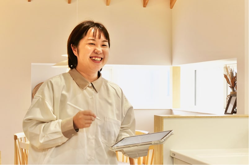 いつでも気軽に相談できる存在に。家づくりがスタートしたら、お客様・担当営業・設計士でグループLINEを作成し、積極的に活用しています。お好きな雰囲気の写真を共有していただいたり、不安なことやスケジュールのご相談なども、いつでもお気軽にお話しください。お引き渡し後もグループLINEはそのまま残しますので、新しい暮らしが始まってからも、私たちとのつながりは続きます。また、オーナー様専用の公式LINEでは、ご紹介キャンペーンなどのご案内も行っております。これからも「いつでも気軽に相談できる、身近な存在」であり続けられるよう努めています。
