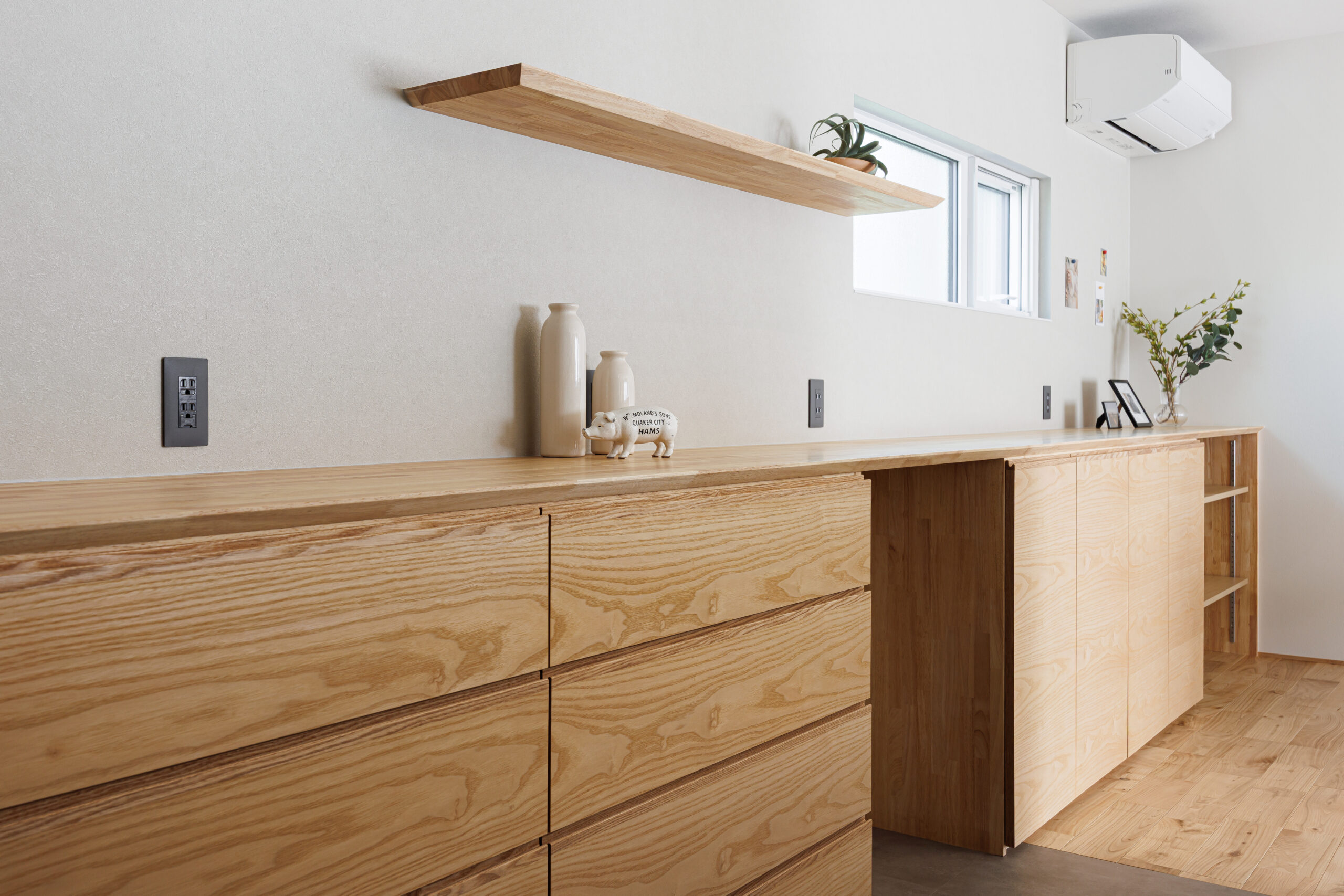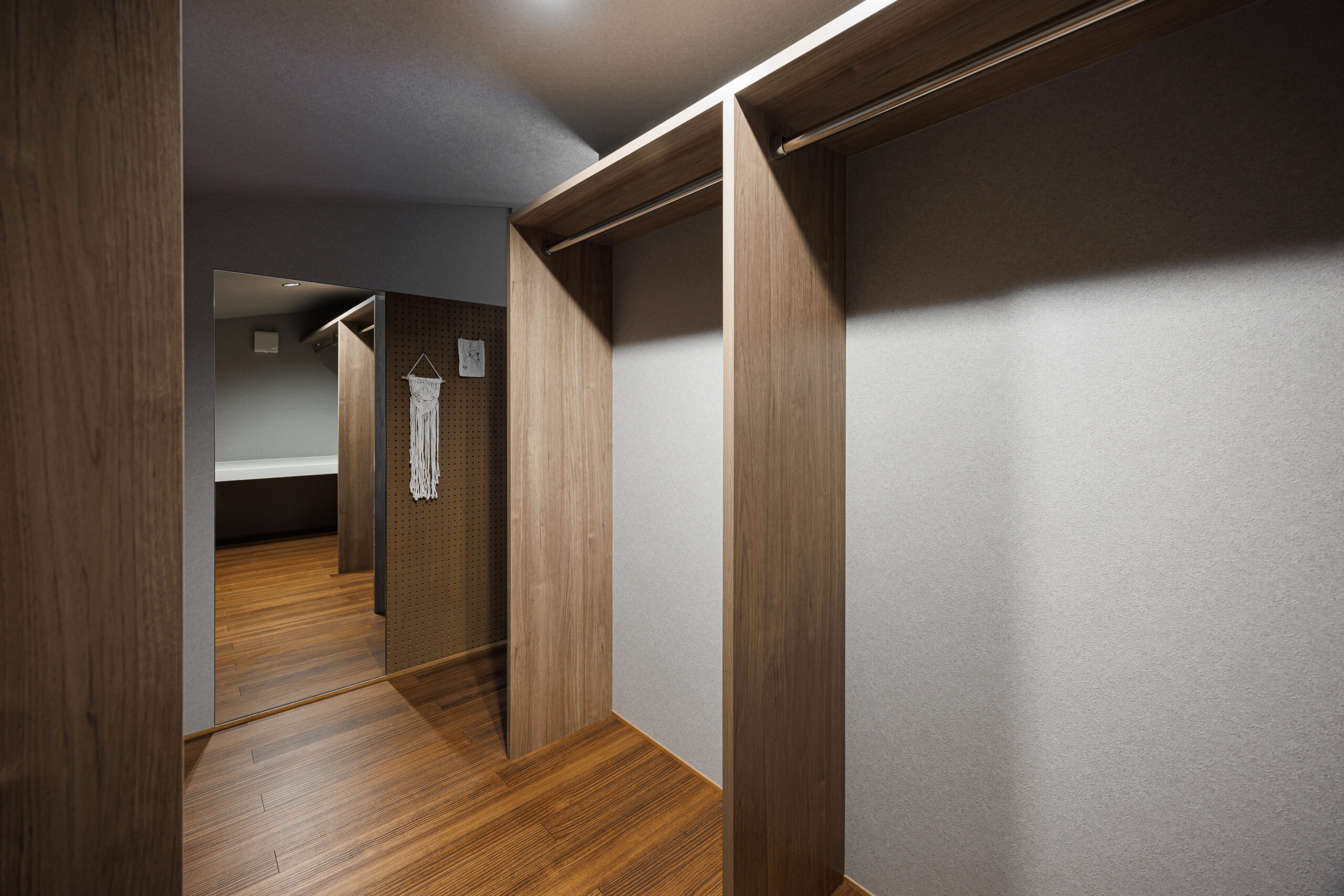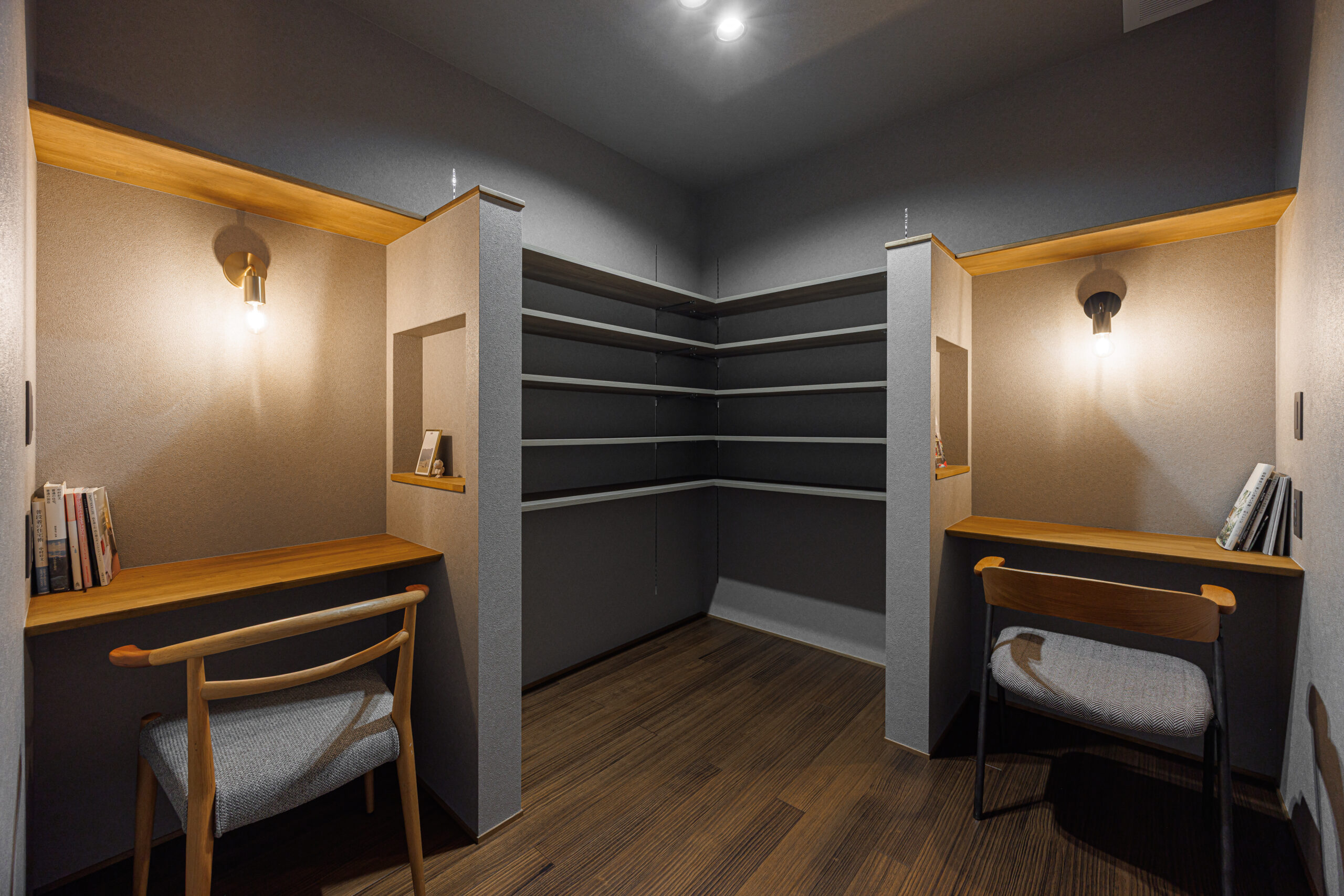 お家で過ごす時間を何よりも大切にするオーナーのために、読書やゲームなどの趣味を、より深く楽しめる住まいをかたちにしました。空間には大きな造作収納やマグネットボードを設け、お気に入りの本や小物、コレクションを思い思いにディスプレイできるよう工夫しています。寝室には、趣味の時間に没頭できる書斎スペースを計画。引き渡し後にお話を伺うと、「ご主人はほとんど書斎に籠っています」と笑顔で語ってくださるほど、この場所が暮らしにしっかりと馴染んでいることが伝わってきました。インドア派のご夫婦だからこそ生まれた住まい「綴」。これから先も、オーナーならではの時間や物語が、この家の中で一つひとつ丁寧に綴られていきます。