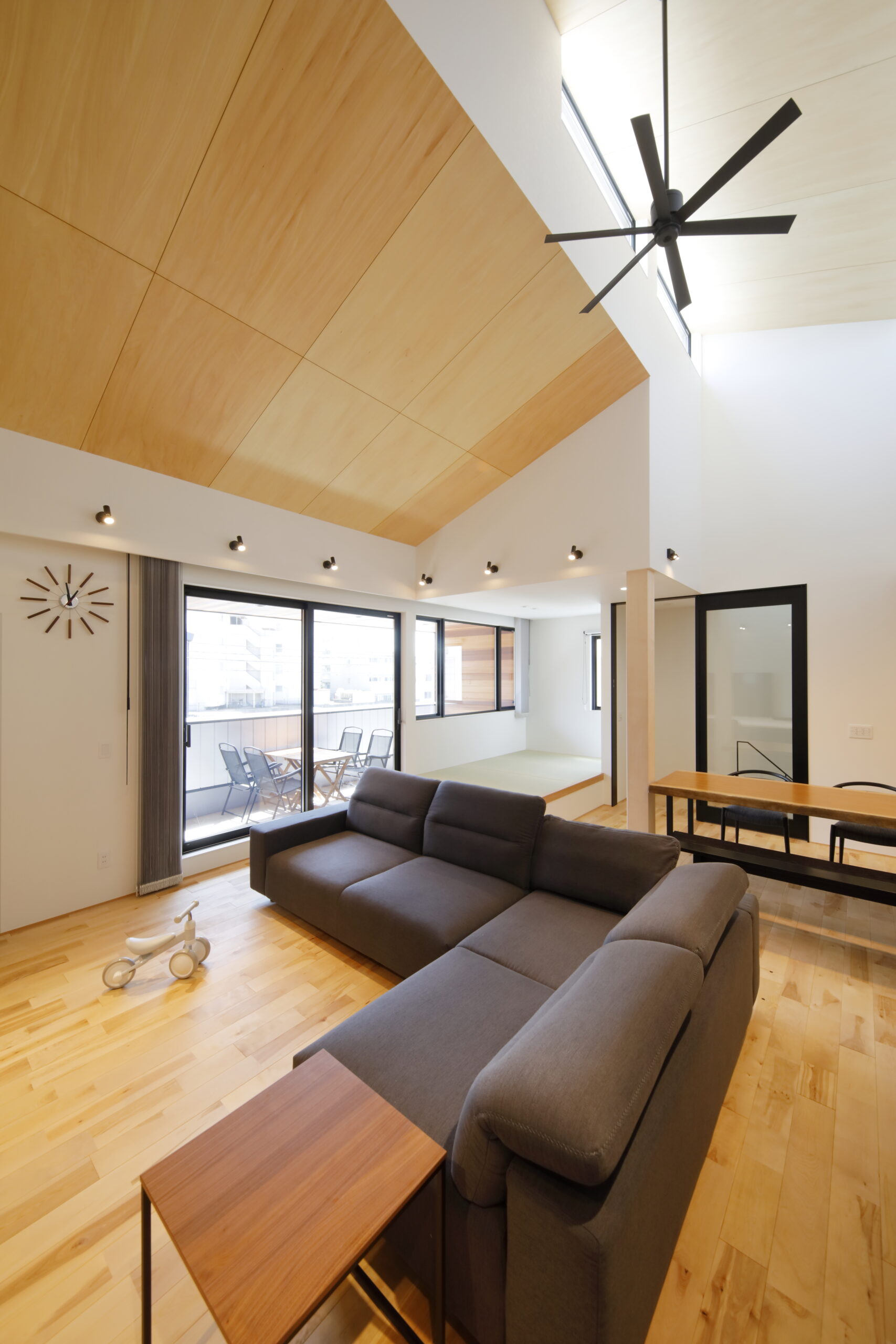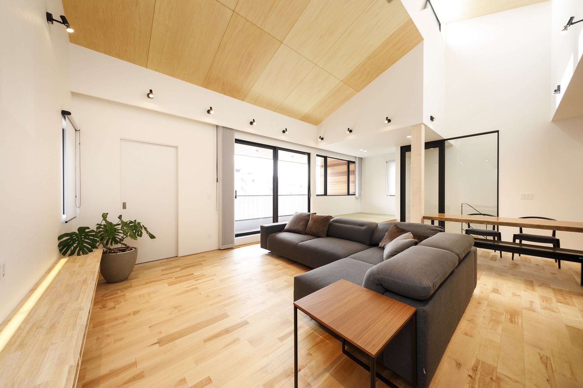 2階である利点を活かした高さのある勾配天井