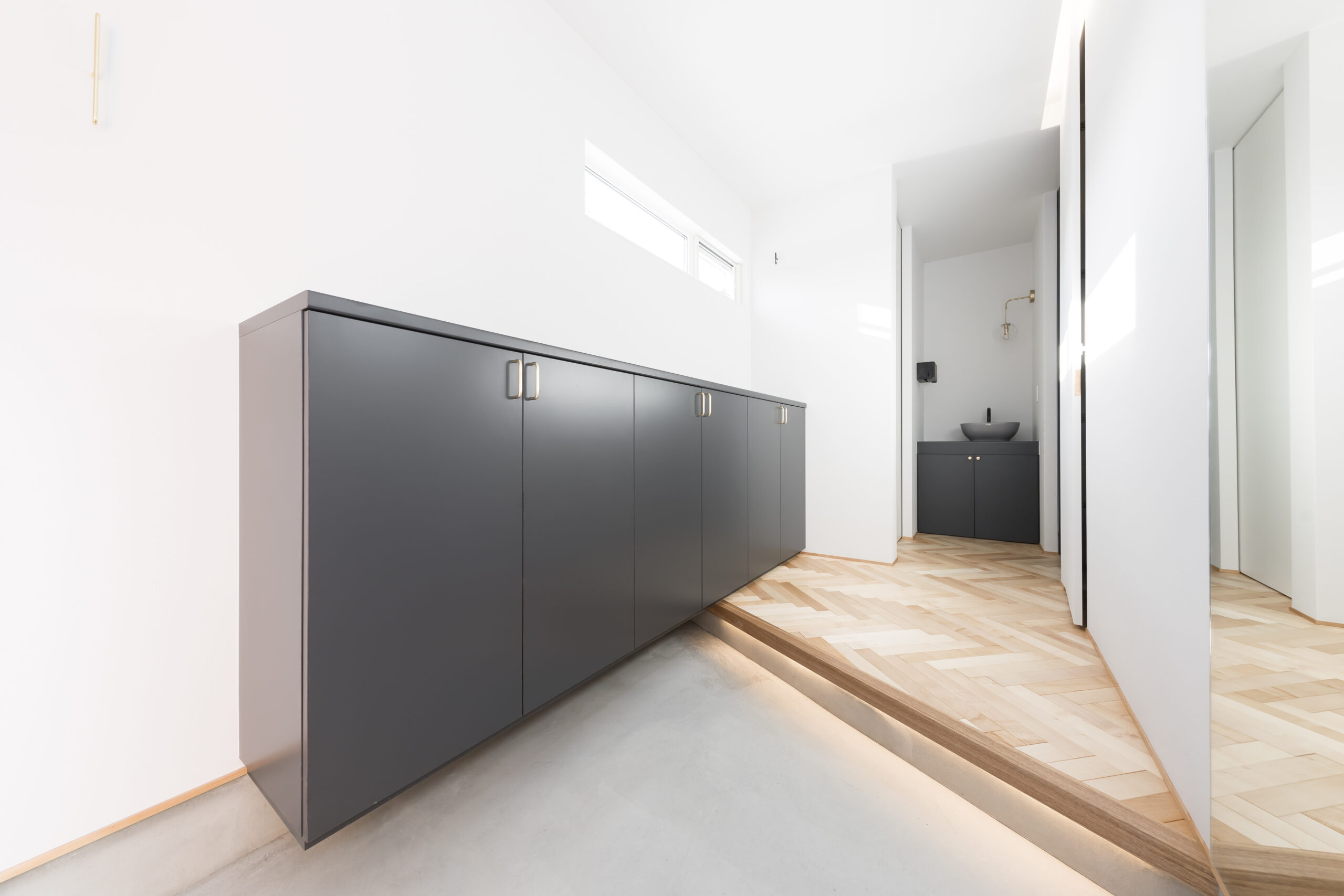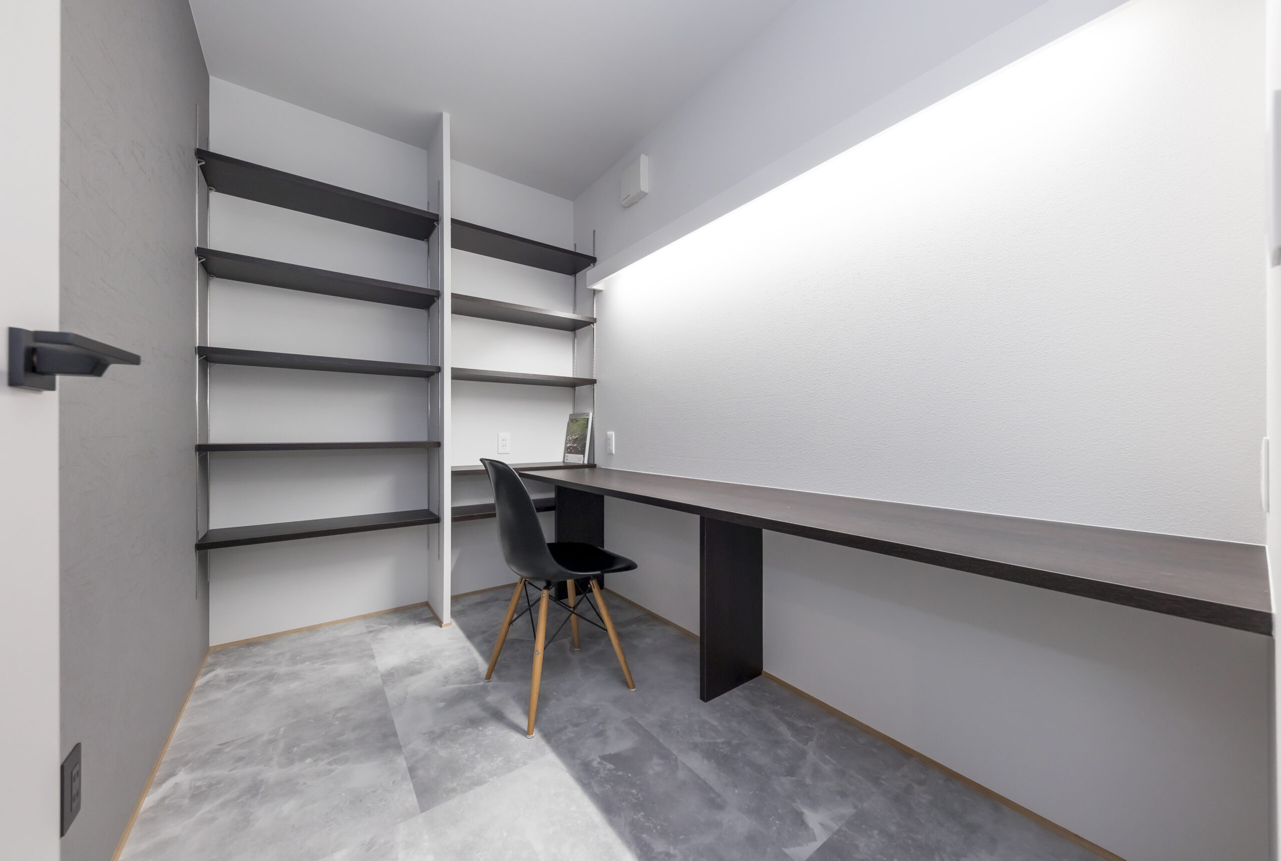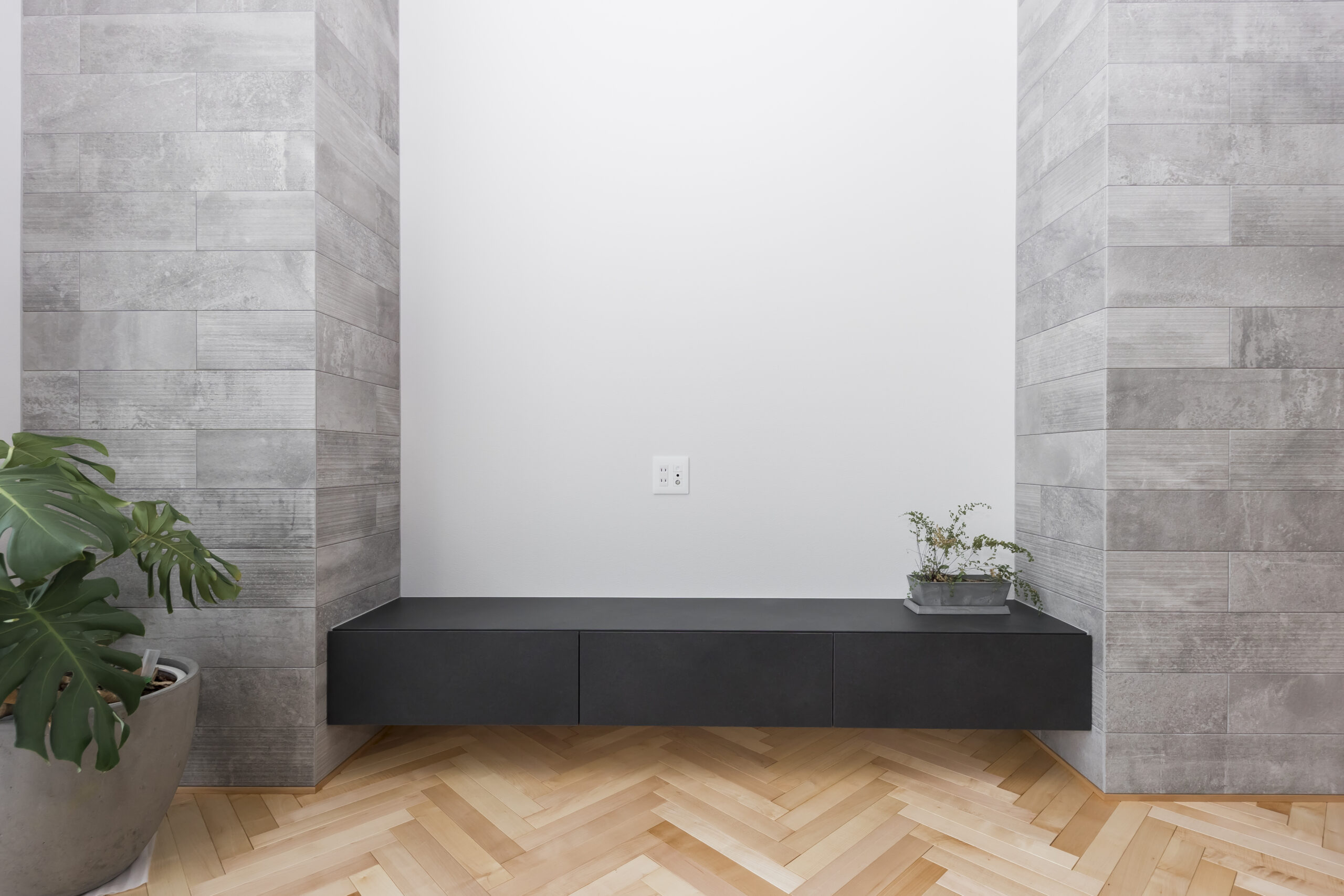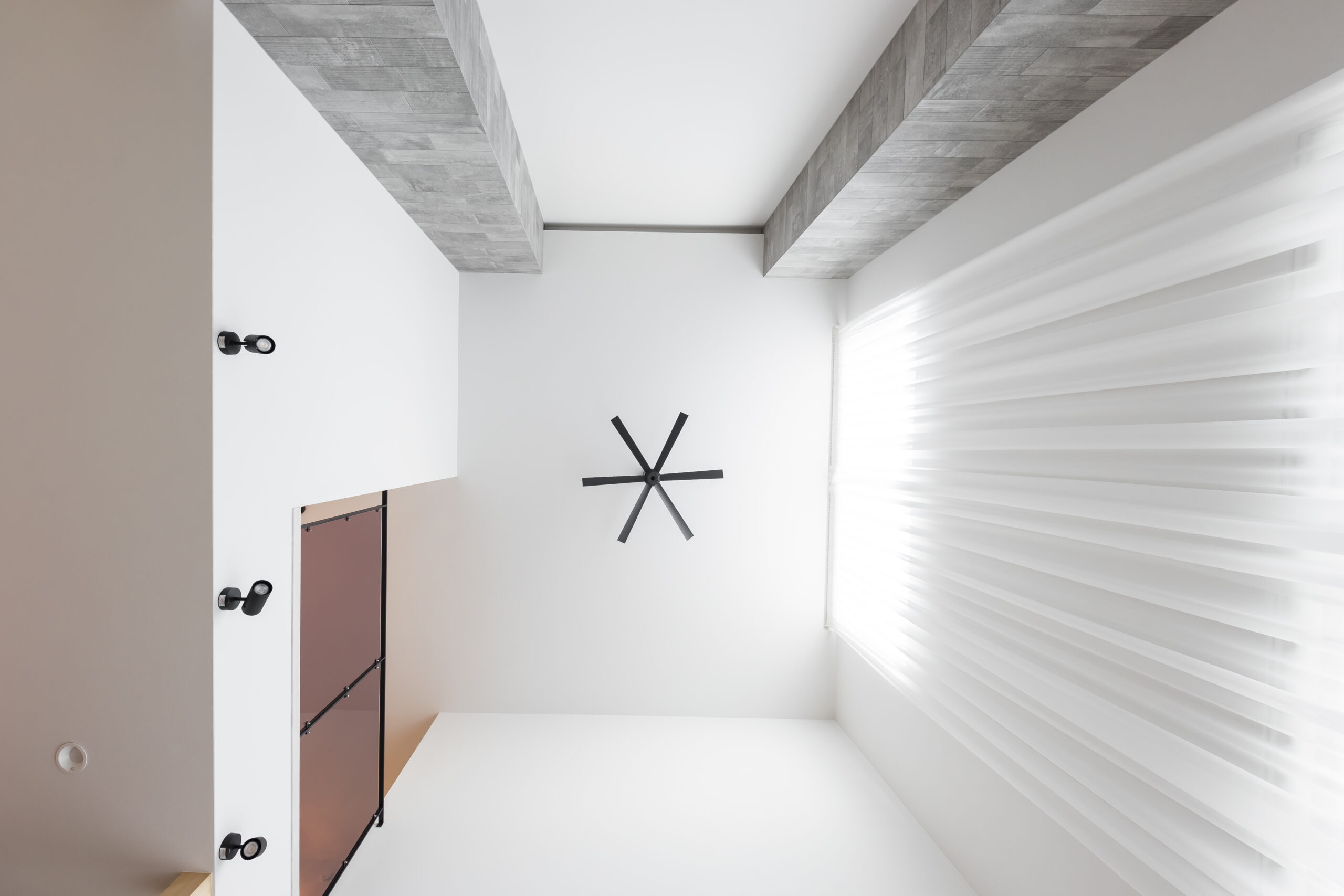 シンプルモダンでホテルライクな住まいを思い描き、名付けられた「lune」。洗練された佇まいの中に、非日常の心地よさを感じられる空間構成を大切にしました。屋根付きの駐車スペースからそのまま通り抜け、庭へとつながる動線は、この住まいならではの特徴的なデザイン。外部からの視線を程よく遮りながらも、日常の使い勝手に配慮した、機能美あふれる設えとしています。室内には吹き抜けを設け、シーリングファンがゆったりと回ることで、空間に心地よいリズムをプラス。南側には庭に面した一面の大きな窓と高窓を配置し、天井から床まで続くロング丈のレースカーテン越しに、やわらかな陽光がたっぷりと差し込みます。光と風、視線の抜けを巧みに取り入れた空間は、まるで海外の高級ホテルに滞在しているかのような上質な趣。日常を特別な時間へと昇華させる、洗練された住まいが完成しました。