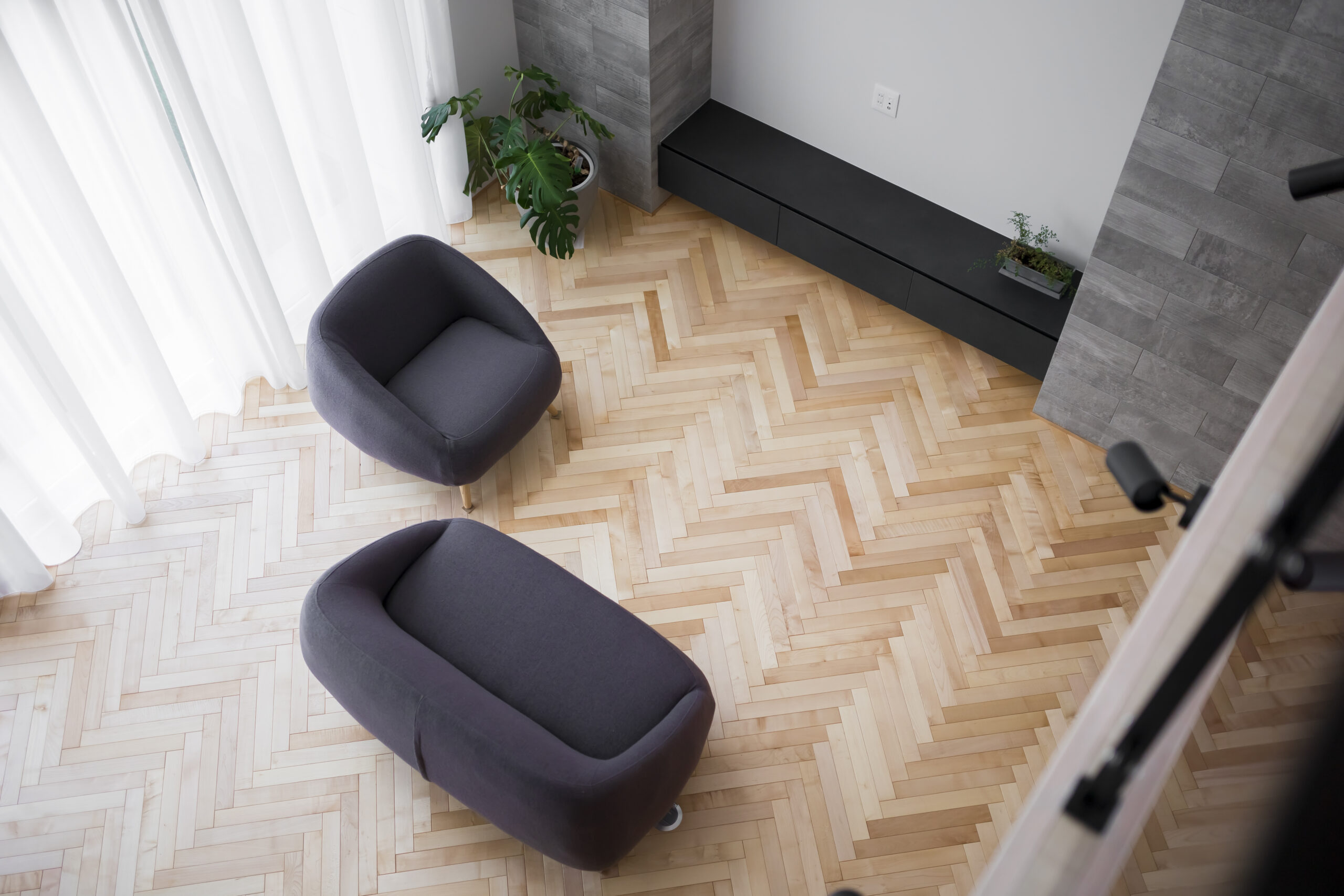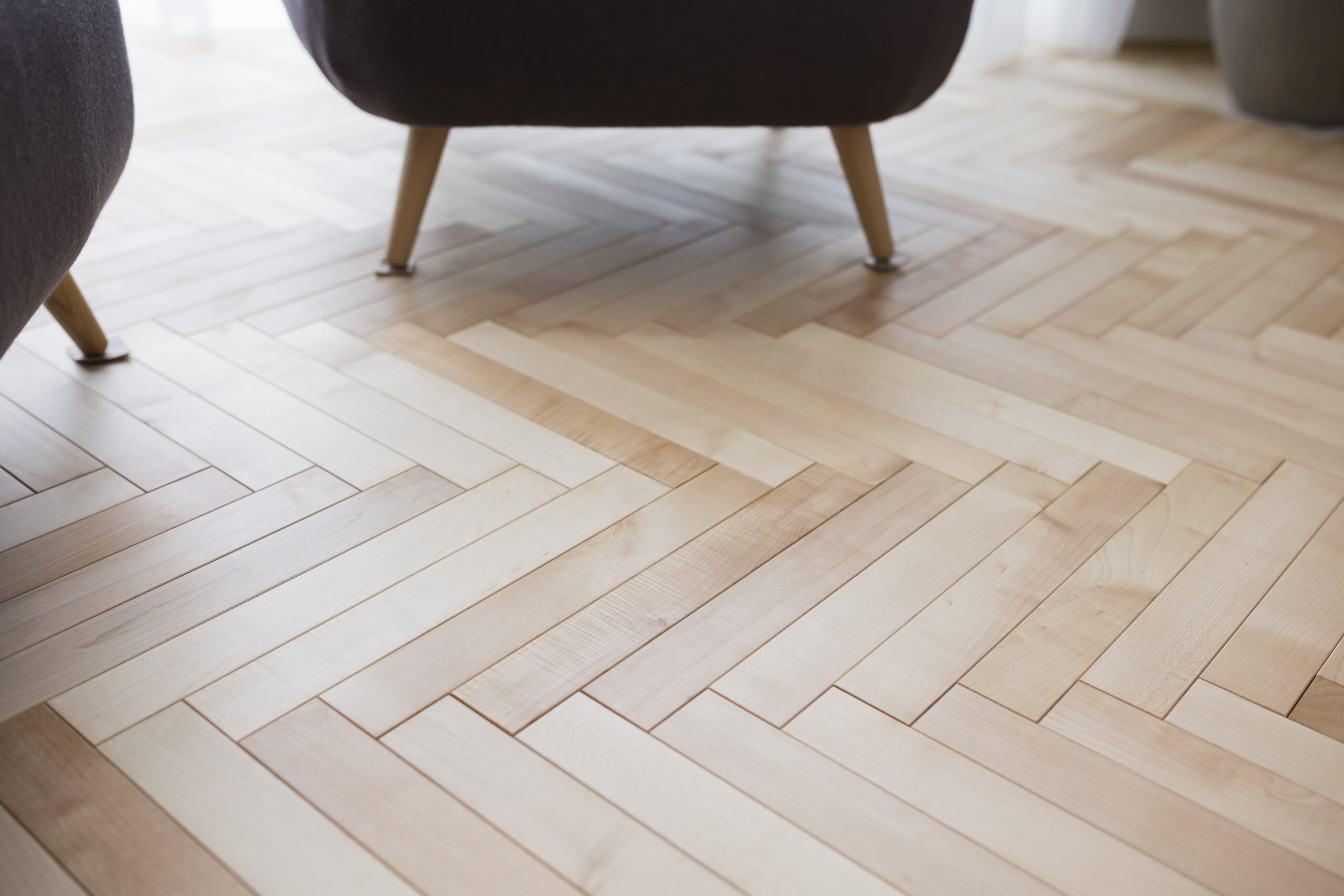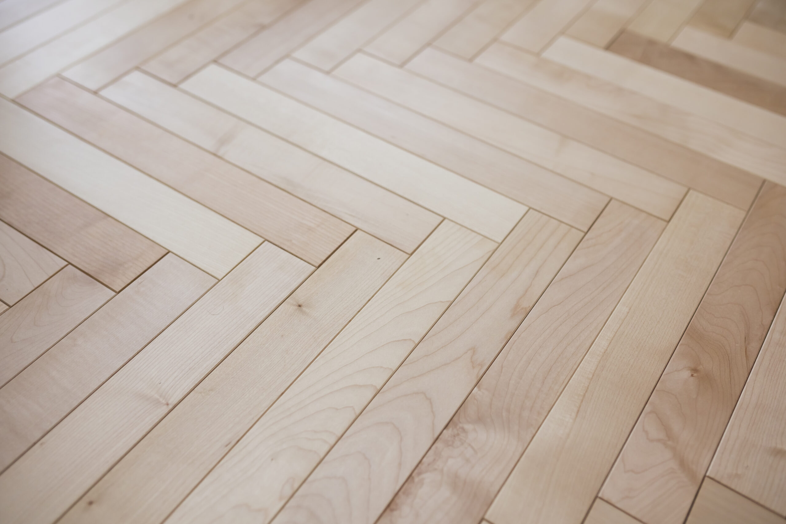 ヘリンボーン貼りの無垢フローリング