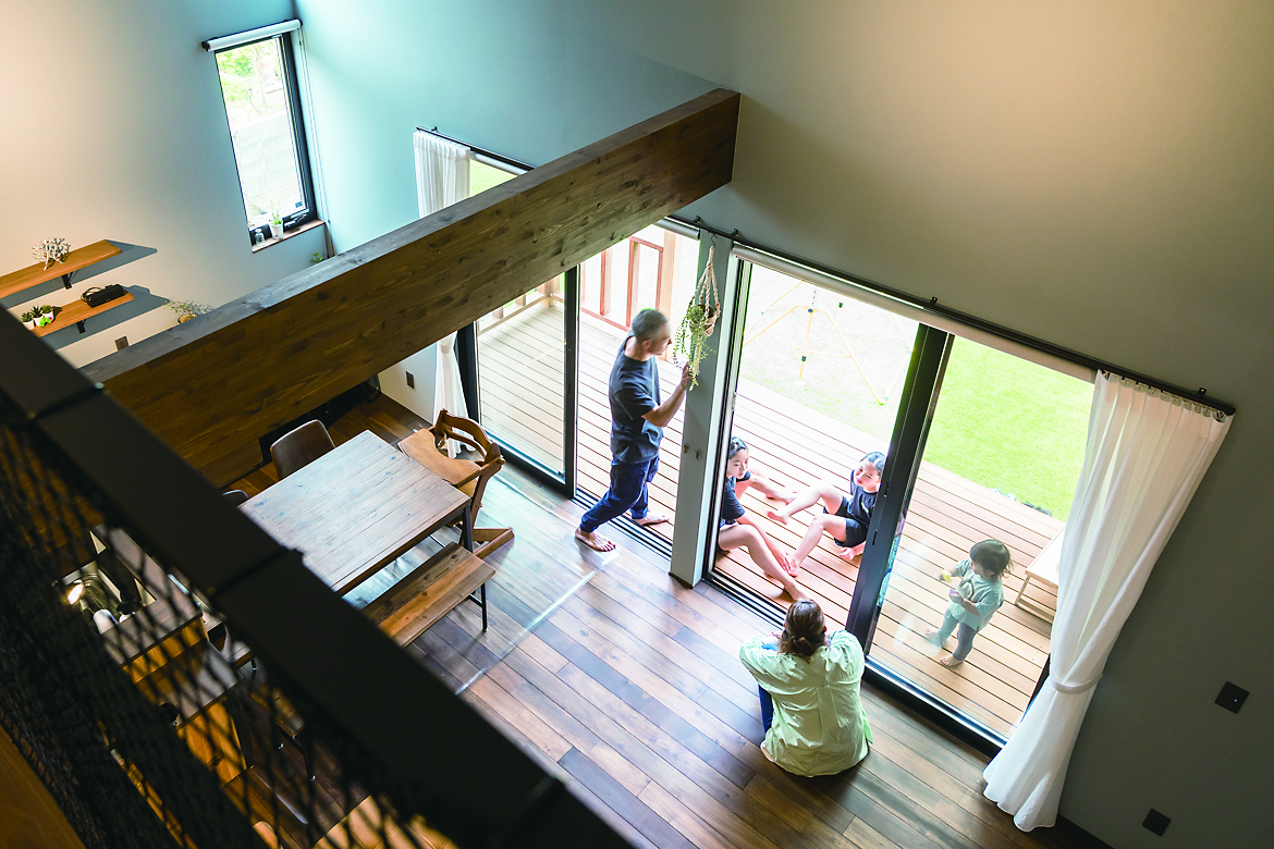 吹抜を通じて家族の距離が縮まる