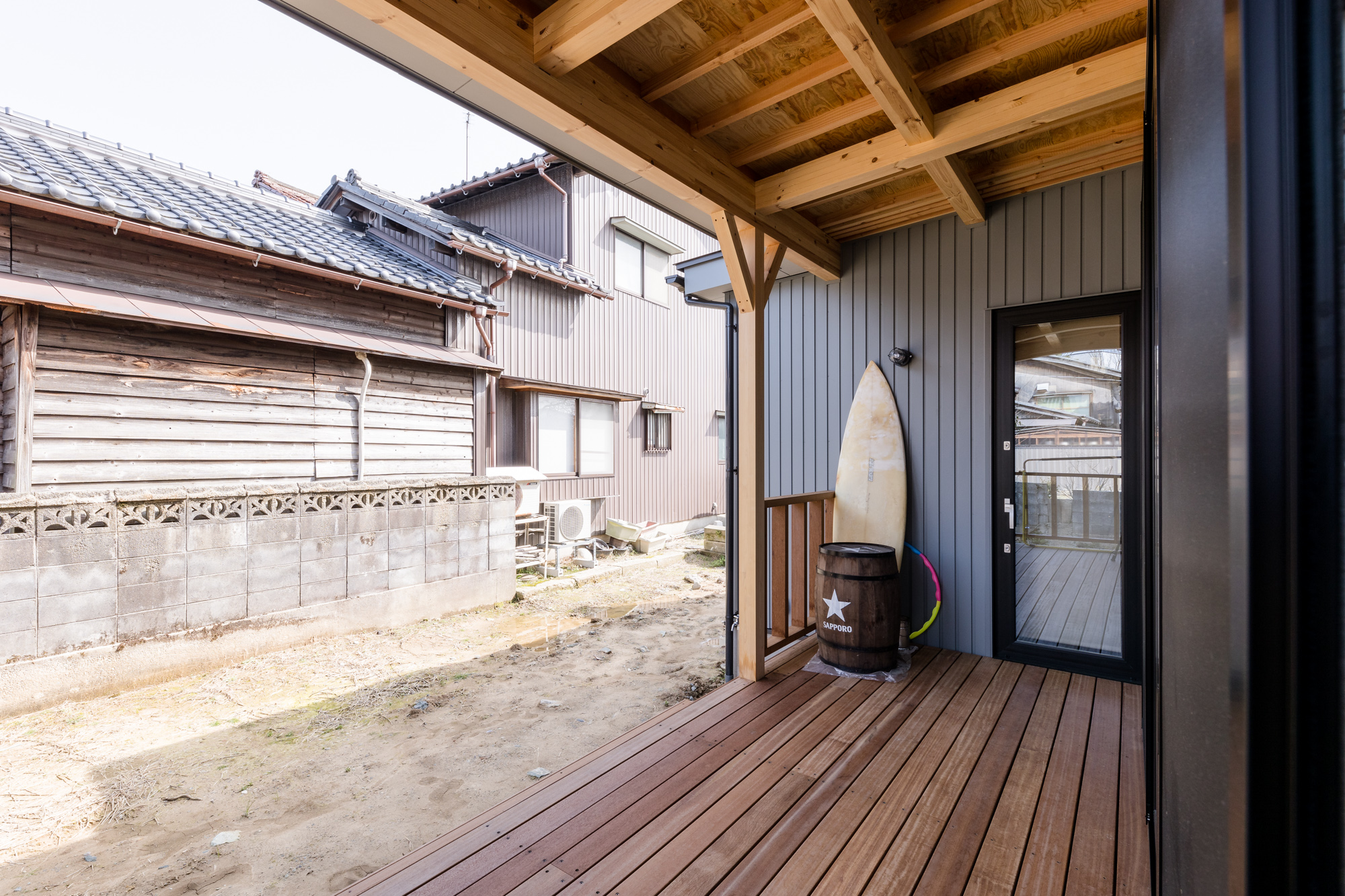 リビングに繋がるウッドデッキ