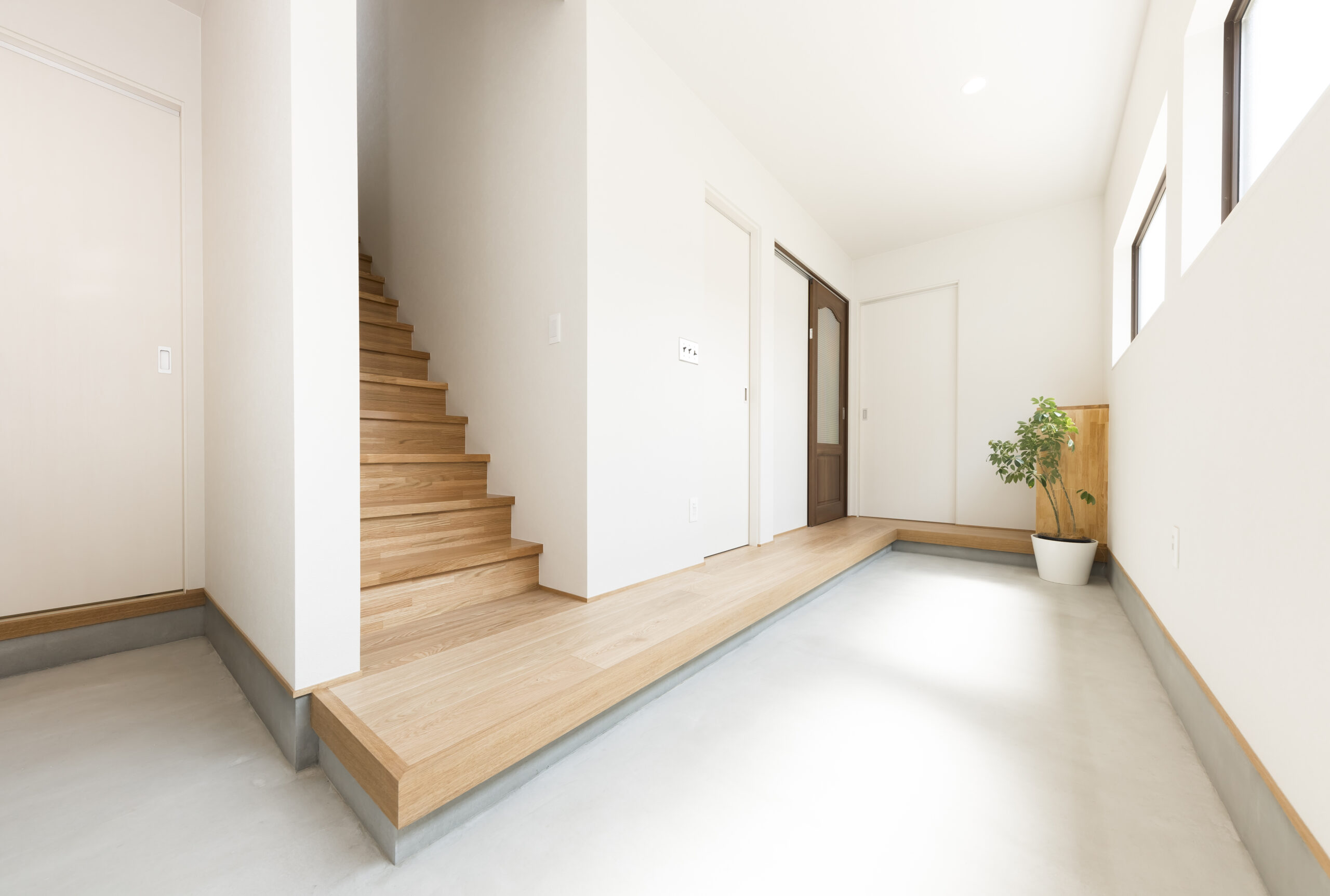 趣味の観葉植物を置くための広々とした土間スペース